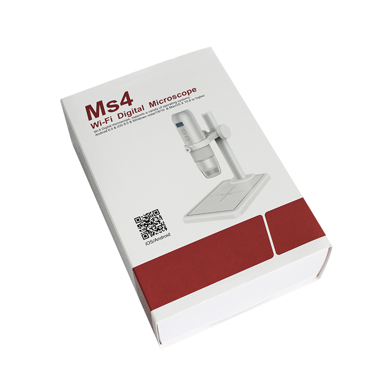 MS4 is a portable digital microscope which has multiple interfaces: WIFI and USB. It also can be connected to phone, pad, Laptop and PC, showing the images directly without using your eyes. It is easy to photo and video through the app and save images.
