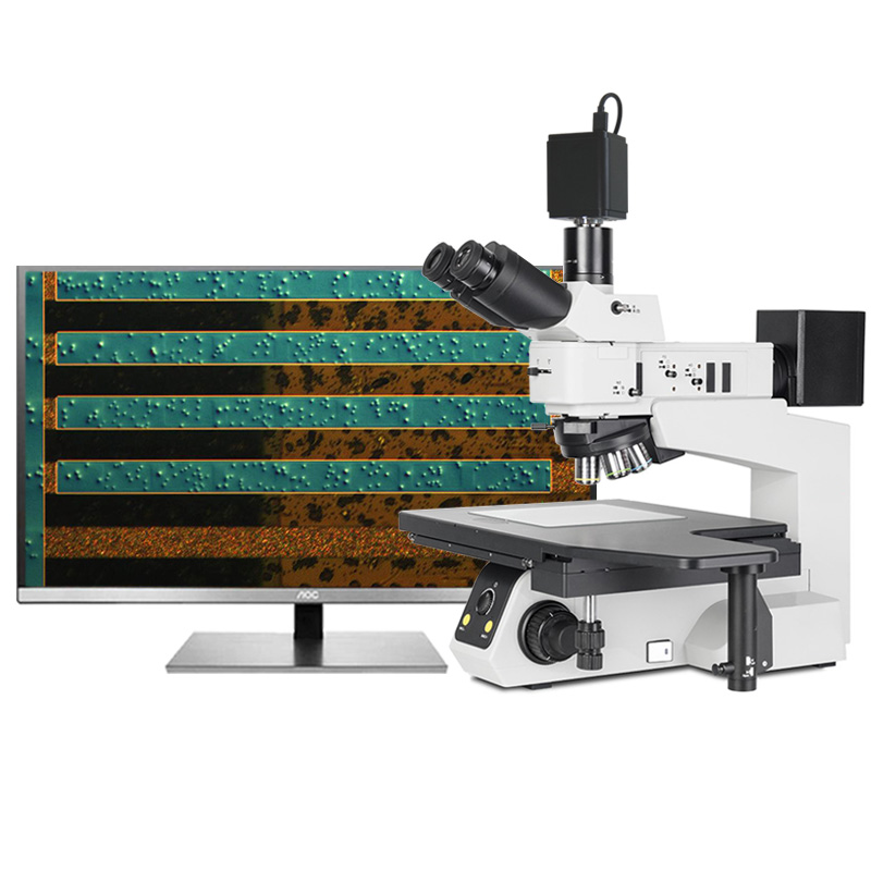 Equipped with a polarization system, including polarizer and analyzer inserts, which can perform polarization testing. In semiconductor and PCB testing, it can eliminate stray light and provide clearer details.