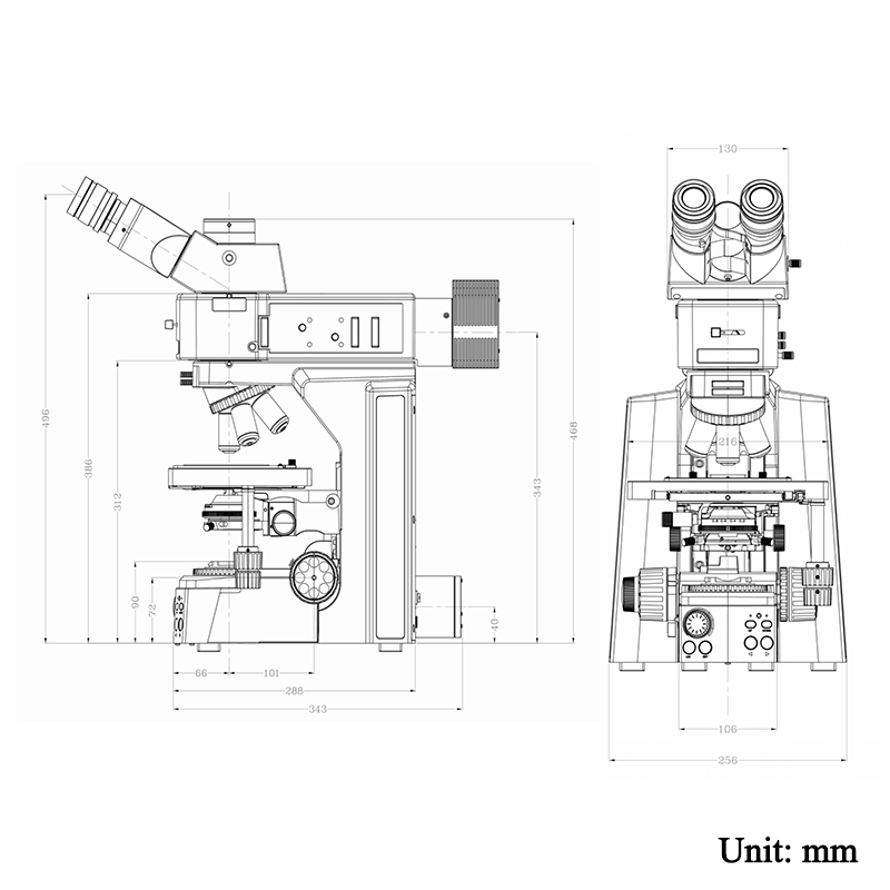 Focus System | Low-hand coaxial coarse/fine focus system, with tension adjustable and up stop, Coarse range: 30mm, minimum division of fine focusing: 1μm; Transmitted & reflected body system can hold samples up to 40mm in height |