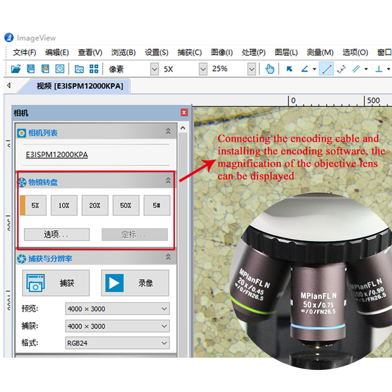 Coded Nosepiece | Coded quintuple nosepiece, automatically adjusts the calibration values recorded in the software when switching lens magnification with Image analysis software, Which is easy to operate and reducing measurement errors |